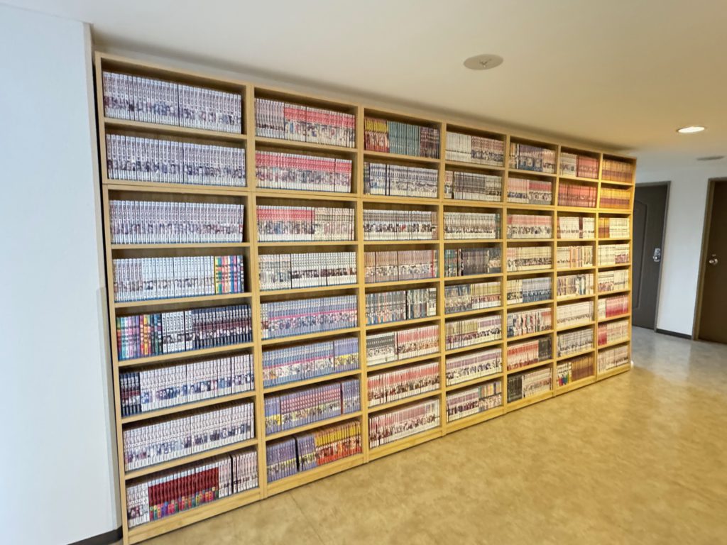 短期はもちろん、長期滞在のお客様も多い他、スポーツ合宿等の団体利用も多く、コミックは以前から自前で設置されており、大変好評とのことでした。